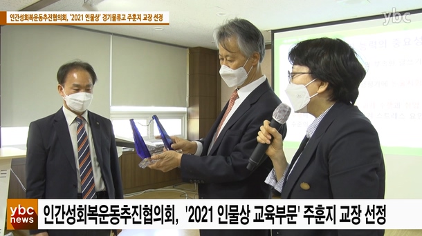 °æ±â¹°·ù°íµîÇб³ ÁÖÈÆÁö ±³ÀåÀÌ 2021 Àΰ£¼ºÈ¸º¹¿îµ¿ÃßÁøÀ§¿øÈ¸ ¿ÃÇØÀÇ Àι°·Î ¼±Á¤µÅ °¨»çÆÐ¸¦ Àü´Þ¹Þ¾Ò½À´Ï´Ù.]