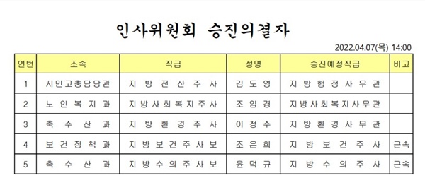 ½ÃÈï½Ã 2022³â »ó¹Ý±â Á¶Á÷°³Æí ÀÎ»ç ½ÂÁøÀǰáÀÚ °øÁö