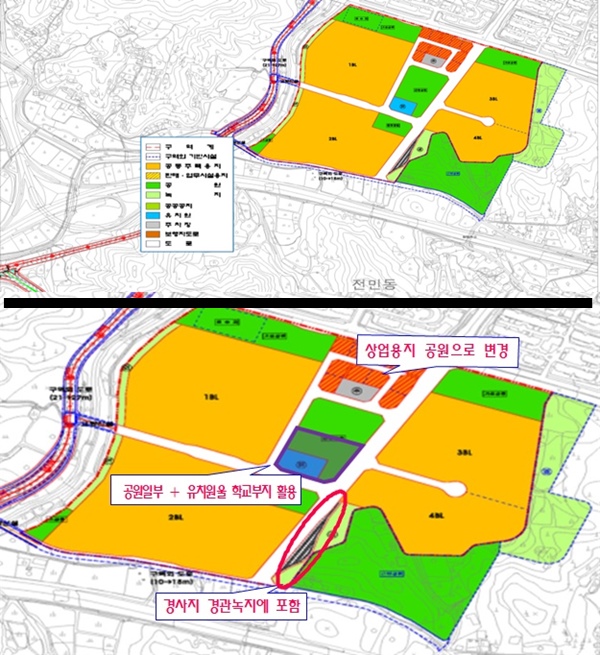 À̹ø Çù¾à¿¡ µû¶ó Áö±¸ ³» À¯Ä¡¿ø ¹× °ø¿øÀϺΰ¡ Çб³¿ëÁö·Î º¯°æ(8,000§³)µÇ°í, ±âÁ¸ »ó¾÷¿ëÁö(3,742§³) ¹× °æ»çÁö(2,300§³)´Â °ø¿øÀ¸·Î ÀüȯµÈ´Ù.