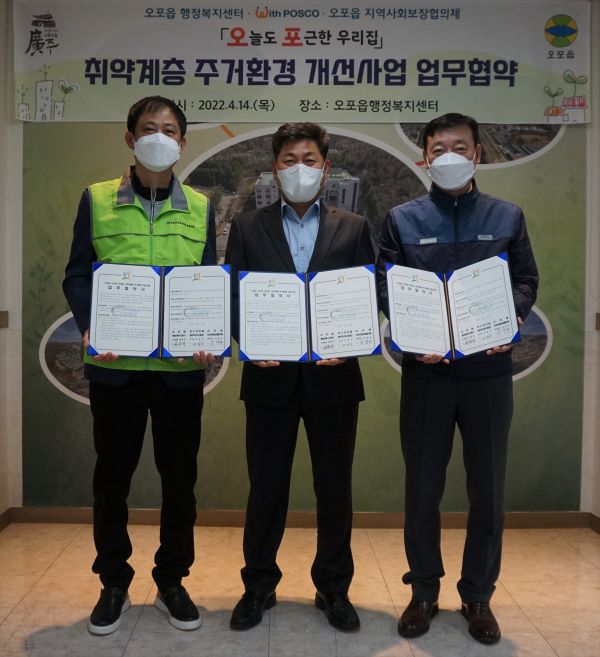 À̹ø Çù¾àÀ¸·Î Æ÷½ºÄڰǼ³ ±¤ÁÖ¿ÀÆ÷»ç¾÷´ÜÀº Ãë¾à°èÃþÀÌ Çö »ýȰ±Ç¿¡¼­ ¾ÈÁ¤ÀûÀ¸·Î °ÅÁÖÇÒ ¼ö ÀÖµµ·Ï À§»ý »óŸ¦ °³¼±ÇÏ°í ¾ÈÀü ÆíÀǽü³À» ¼³Ä¡ÇÏ´Â µî ´ë»óÀÚº° ¸ÂÃãÇü Áý¼ö¸®¸¦ À§ÇØ 1õ¸¸¿ø »ó´çÀÇ Áö¿ø°ú Á÷¿øµéÀÇ ºÀ»ç¸¦ ¾à¼ÓÇß´Ù.