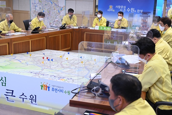 ¼ö¿ø½Ã°¡ 18ÀÏ Á¶Ã»½Ä ¼ö¿ø½ÃÀå ±ÇÇÑ´ëÇà ÁÖÀç·Î ¡®°Å¸®µÎ±â ÇØÁ¦ ¹× Æ÷½ºÆ® ¿À¹ÌÅ©·Ð ´ëÀÀ¹æ¾È ³íÀÇ¡¯ ȸÀǸ¦ °³ÃÖÇÏ°í °Å¸®µÎ±â ÇØÁ¦ µî ÀÚÀ²¹æ¿ªÃ¼°è Àüȯ¿¡ µû¸¥ ¼ö¿ø½ÃÀÇ ´ëÀÀ ¹æ¾ÈÀ» ³íÀÇÇß´Ù.