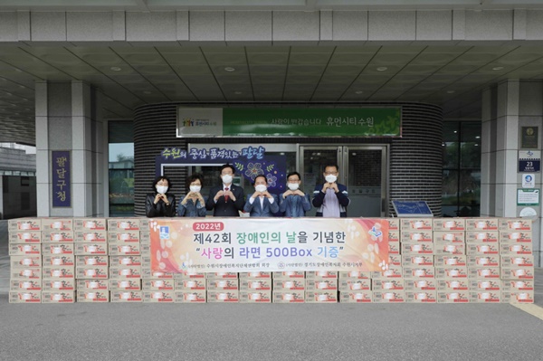 ¼ö¿ø½Ã ÆÈ´Þ±¸´Â Áö³ 22ÀÏ ±¸Ã» ¾Õ¸¶´ç¿¡¼ (»ç)°æ±âµµÀå¾ÖÀκ¹Áöȸ ¼ö¿ø½ÃÁöºÎ¿¡¼ ÈÄ¿øÇÑ ¶ó¸é 130¹Ú½º Àü´Þ½ÄÀ» °¡Á³´Ù°í ¹àÇû´Ù.