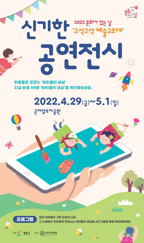 ƯÈ÷, 4¿ù ¹®È­°¡ ÀÖ´Â ³¯ ¡®½Å±âÇÑ °ø¿¬Àü½Ã¡¯¿¡´Â Áö¿ª ¾Æµ¿µéÀÌ Âü¿©ÇÑ ¹®È­¿¹¼ú°ú AR±â¼úÀ» Ȱ¿ëÇÑ Àü½Ã¸¦ ¼±º¸ÀδÙ. ¹Ì¼ú°ú ¿¬±ØÀ» À¶ÇÕÇØ °ø¿¬ÄÜÅÙÃ÷¸¦ ¸¸µé°í ÀÌ¿¡ AR±â¼úÀ» ÀÔÇô Àü½Ã°¡ °¡´ÉÇÑ ÀÛǰÀ» ¸¸µé¾ú´Ù.