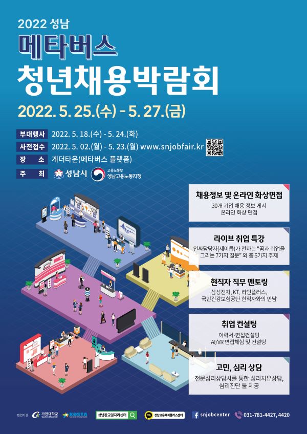 ¼º³²½Ã´Â ¿À´Â 5¿ù 25ÀϺÎÅÍ 27ÀϱîÁö ¸ÞŸ¹ö½º(3Â÷¿ø °¡»ó¼¼°è)¸¦ Ȱ¿ëÇÑ ¿Â¶óÀΠû³âÃë¾÷¹Ú¶÷ȸ¸¦ ¼º³²°í¿ëº¹ÁöÇ÷¯½º¼¾ÅÍ¿Í °øµ¿À¸·Î °³ÃÖÇÑ´Ù.