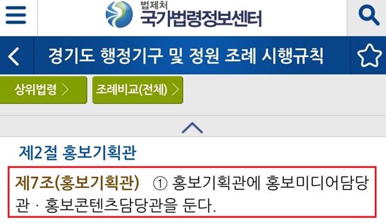 ƯÈ÷ °°Àº ±ÔÁ¤ÀÎ ¡¯°æ±âµµ ÇàÁ¤±â±¸ ¹× Á¤¿ø Á¶·Ê ½ÃÇà±ÔÄ¢ Á¦7Á¶ ¨çÇ׿¡¼ ¡®È«º¸±âȹ°ü¿¡ È«º¸¹Ìµð¾î´ã´ç°ü¤ýÈ«º¸ÄÜÅÙÃ÷´ã´ç°üÀ» µÐ´Ù.¡¯·Î ¸í±âÇÏ¸é¼ Á÷Á¦»ó ¼Ò¼Ó°ü°è¸¦ ¸íÈ®È÷ ±ÔÁ¤Çß´Ù´Â Á¡ÀÌ ÁÖ¸ñµÈ´Ù.