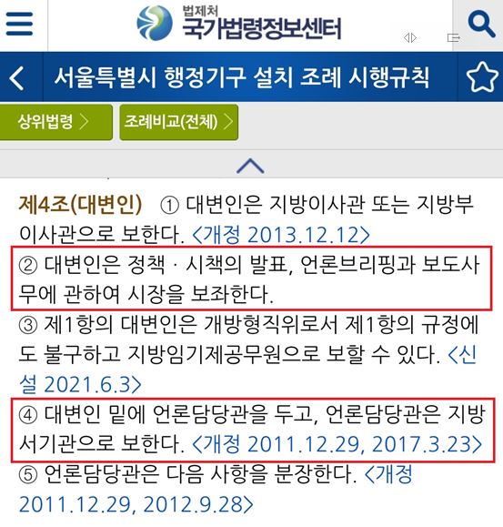 ÀÎÁ¢ ±¤¿ª´ÜüÀÎ ¼¿ïƯº°½ÃÀÇ °æ¿ì´Â ¼¿ïƯº°½Ã ÇàÁ¤±â±¸ ¼³Ä¡ Á¶·Ê ½ÃÇà±ÔÄ¢ Á¦4Á¶ ¨êÇ׿¡ ¡®´ëº¯ÀÎ ¹Ø¿¡ ¾ð·Ð´ã´ç°üÀ» µÎ°í, ¾ð·Ð´ã´ç°üÀº Áö¹æ¼±â°üÀ¸·Î º¸ÇÑ´Ù¡¯·Î Á¤Çϰí ÀÖÀ¸¸ç, ÀÎõ±¤¿ª½ÃÀÇ °æ¿ì¿¡´Â ÀÎõ±¤¿ª½Ã ÇàÁ¤±â±¸ ¼³Ä¡ Á¶·Ê ½ÃÇà±ÔÄ¢ Á¦4Á¶ ¨éÇ׿¡ ¡®´ëº¯ÀÎÀº ´ÙÀ½ »çÇ׿¡ °üÇÏ¿© ½ÃÀåÀ» º¸ÁÂÇÑ´Ù.¡¯·Î Á¤ÇÏ¸é¼ ¡â¾ð·Ð º¸µµ°èȹÀÇ ÃѰý¡¤Á¶Á¤ ¡â°øº¸ÇàÁ¤ Á¾ÇÕ°èȹ ¼ö¸³ ¡â½Å¹®, ÀâÁö, Á¤±â°£Ç๰ µî µî·Ï ¹× °ü¸® ¡âº¸µµÀÚ·á Á¦°ø ¹× Á¶Á¤ ¡â¾ð·Ðº¸µµ ¸ð´ÏÅ͸µ ½ºÅ©·¦ ¹× º¸µµ ºÐ¼® µîÀÇ ¾÷¹«ºÐÀåÀ» ÀÚ¼¼È÷ Àû½ÃÇß´Ù.