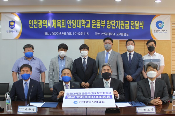 À̱Իý ÀÎõ½ÃüÀ°È¸ ȸÀåÀº ¡°ÃÖ±Ù ¸¹Àº Çб³¿¡¼ ¿îµ¿ºÎ¸¦ Ãà¼ÒÇØ°¡´Â °¡¿îµ¥ ¾È¾ç´ë¿¡¼ 6°³ Á¾¸ñÀÇ ¿îµ¿ºÎ â´ÜÀ» °áÁ¤ÇÑ °Í¿¡ Áø½ÉÀ¸·Î °¨»çÇÑ´Ù¡±¶ó¸ç ¡°ÀÎõ °ÈÄ·ÆÛ½º¿¡ ½ºÆ÷Ã÷ ÀüÁø±âÁö¸¦ ¸¶·ÃÇÑ ¾È¾ç´ëÀÇ ¿îµ¿ºÎ ¹ßÀü¿¡ ¾ÕÀ¸·Îµµ Àû±ØÀûÀÎ Áö¿øÀ» ¾Æ³¢Áö ¾ÊÀ» °Í¡±À̶ó°í ¸»Çß´Ù.