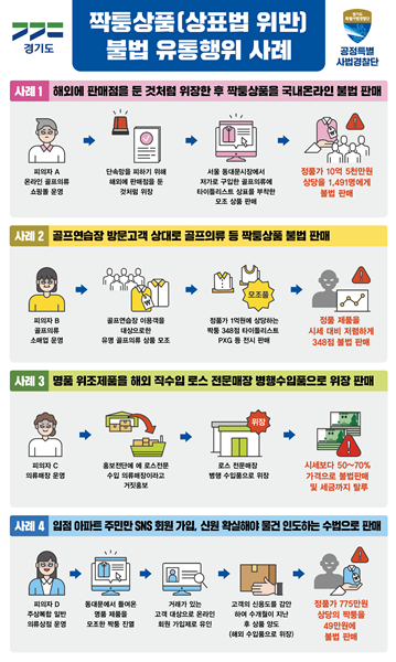 Àû¹ßµÈ À¯¸íºê·£µå À§Á¶»óǰ ±Ô¸ð´Â ÃÑ 2,072Á¡À¸·Î ½Ã¼¼ 14¾ï2õ¸¸ ¿ø »ó´çÀÌ´Ù. »óÇ¥·Î´Â °ñÇÁ¿ëǰÀΠŸÀÌÆ²¸®½ºÆ®°¡ 1,610Á¡À¸·Î °¡Àå ¸¹¾Ò°í ÇÇ¿¢½ºÁö(PXG) 119Á¡, »þ³Ú․ÇÁ¶ó´Ù․µð¿Ã․·çÀ̺ñÅë µîÀÌ 343Á¡À¸·Î Áý°èµÆ´Ù. ǰÁ¾º°·Î´Â ÀÇ·ù 1,963Á¡, °¡¹æ 19Á¡, ½ºÄ«ÇÁ․º§Æ®․½Å¹ß․¾Ç¼¼»ç¸® µîÀÌ 90Á¡ÀÌ´Ù.