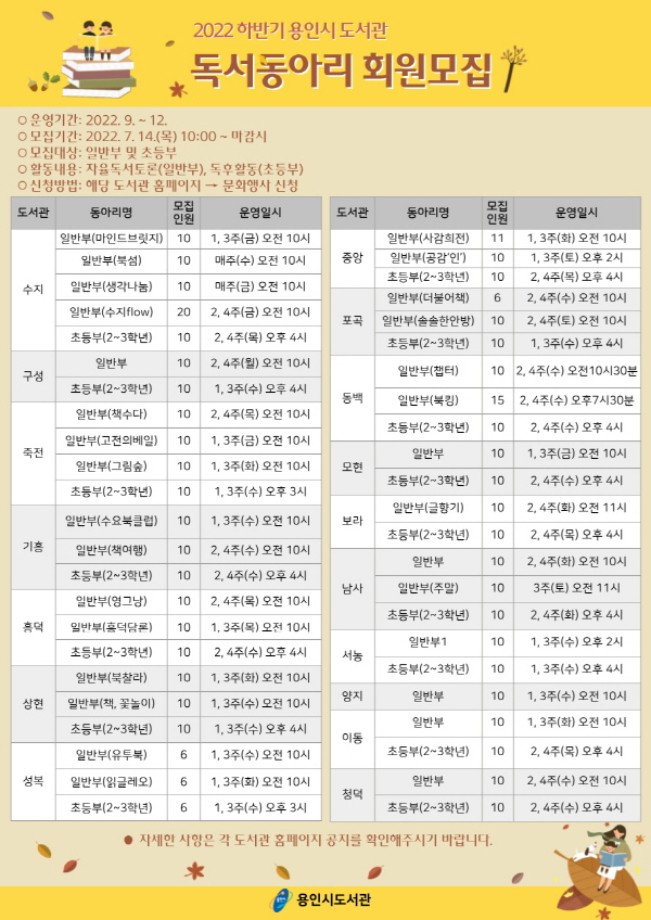 ½ÅûÀ» ÇÏ·Á¸é ¿ëÀνà µµ¼°ü»ç¾÷¼Ò ȨÆäÀÌÁö(https://lib.yongin.go.kr)¿¡¼ Ȱµ¿ÇÒ µµ¼°ü »çÀÌÆ®·Î À̵¿ÇÑ µÚ ¹®ÈÇà»ç Äڳʸ¦ ÀÌ¿ëÇÏ¸é µÈ´Ù. ¿ëÀνùÎÀ̶ó¸é ´©±¸³ª Âü¿©ÇÒ ¼ö ÀÖ´Ù.
