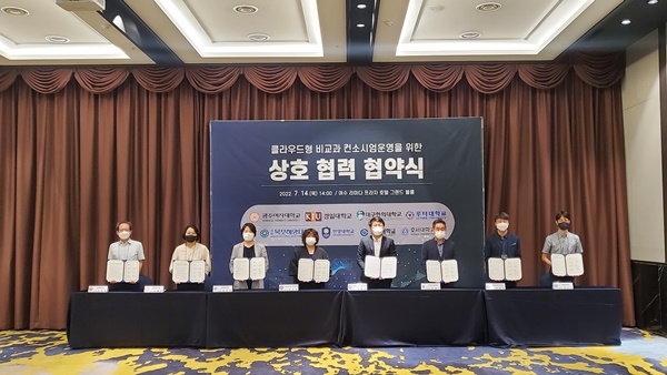 Àü³² ¿©¼ö½Ã ¶ó¸¶´ÙÇÁ¶óÀÚ 5Ãþ ±×·£µåº¼·ë¿¡¼­ ¿­¸° À̹ø Ŭ¶ó¿ìµåÇü ºñ±³°ú ÄÁ¼Ò½Ã¾ö Çù¾à½Ä¿¡´Â ¾È¾ç´ëÇб³¸¦ Æ÷ÇÔÇÑ 8°³ ´ëÇÐÀÌ Âü¿©ÇØ °¢ ´ëÇÐÀÇ ¿ì¼ö ºñ±³°ú ÇÁ·Î±×·¥ °øÀ¯ ¹× °øµ¿ ¿î¿µÀ» À§ÇÑ »óÈ£ ±³·ù ¹× Çù·ÂÀ» ´ÙÁüÇß´Ù.