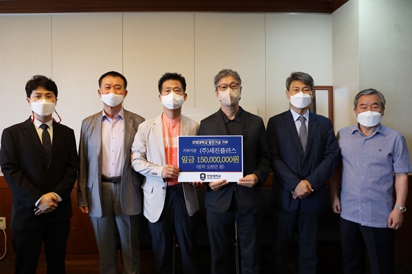 ¾È¾ç´ëÇб³ Çб³¹ýÀÎ ¿ìÀÏÇпø ÀÌ»çÀå½Ç¿¡¼­ Áö³­ 26ÀÏ ¿­¸° ¹ßÀü±â±Ý ¾àÁ¤½Ä¿¡¼­ ¢ß¼¼ÁøÇ÷¯½º ¹ÚÁØ¿µ ´ëÇ¥´Â ¡°¼öµµ±Ç ¸í¹® ´ëÇÐÀ¸·Î ¹ßµ¸¿òÇϰí ÀÖ´Â ¾È¾ç´ëÇб³ÀÇ Çб³ ¹ßÀüÀ» À§ÇØ µµ¿òÀÌ µÇ¾úÀ¸¸é ÁÁ°Ú´Ù¡±¸ç 1¾ï 5õ¸¸ ¿ø ¹ßÀü±â±Ý ¾àÁ¤¼­¿¡ ¼­¸íÇß´Ù.