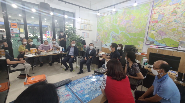 Áö³ 19ÀÏ ÆòÅýà ºñÀüµ¿ ¼Ò»ç¹úÄ«Æä°Å¸® »óÀÎȸ »ç¹«½Ç¿¡¼ ȯ°æ±¹ÀåÀ» ºñ·ÔÇÑ ½Ã °ü°èÀÚ, »óÀÎȸ µî 20¿© ¸íÀÌ Âü¼®ÇÑ °¡¿îµ¥ Á߽ɻó¾÷Áö¿ª(¼Ò»ç¹ú Ä«Æä°Å¸®) ¹®Àü¼ö°Å ½Ã¹ü¿î¿µÀ» À§ÇÑ ÁֹΠ°£´ãȸ°¡ ¿·È´Ù.