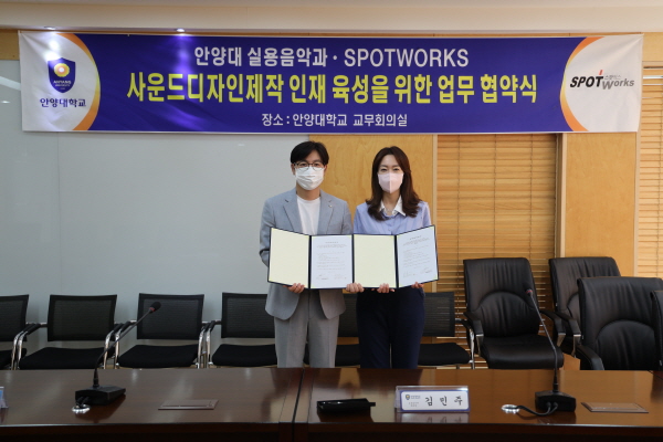 22ÀÏ, ¾È¾ç´ëÇб³ ½Ç¿ëÀ½¾Ç°ú¿Í °ÔÀÓ»ç¿îµå Á¦ÀÛ»çÀÎ ½ºÆÌ¿÷½º°¡ »ç¿îµå µðÀÚÀÎ Á¦ÀÛ ¹× ÀÎÀç À°¼ºÀ» À§ÇÑ ¾÷¹«Çù¾àÀ» ü°áÇß´Ù.