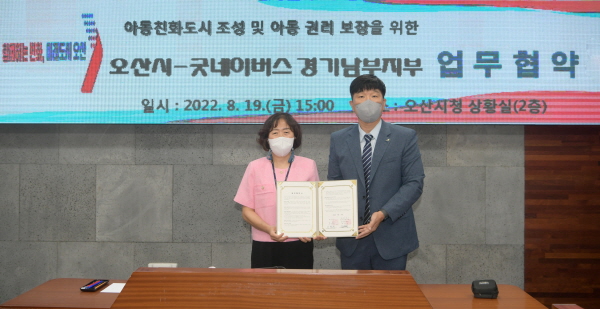 ¿À»ê½Ã-±Â³×À̹ö½º °æ±â³²ºÎÁöºÎ ¾Æµ¿Ä£Èµµ½Ã Á¶¼º ¾÷¹«Çù¾à ü°á - ¾Æµ¿±Ç¸® ¹× ¼¼°è½Ã¹Î ±³À°, ¾Æµ¿±Ç¸® º¸È£ ¹× º¸ÀåÀ» À§ÇÑ »ç¾÷ µî¿¡ »óÈ£ Çù·ÂÇÒ °èȹ |