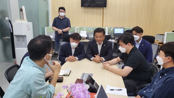 29ÀÏ ¿ÀÈÄ 4½Ã À¯Àǵ¿ ±¹¹ÎÀÇÈû °æ±âµµ´ç À§¿øÀåÀº È·ÁÇÑ ÃëÀÓ½Ä Á÷ÈÄ µµ´ç ³» ¸¶·ÃµÈ Àå¼Ò¿¡¼ µµ´ç ÃâÀÔ±âÀÚµé°úÀÇ °£´ãȸ¸¦ ¸¶·ÃÇß´Ù. °°Àº ½Ã°¢ ÀÓÁ¾¼º ´õºÒ¾î¹ÎÁÖ´ç °æ±âµµ´ç À§¿øÀåÀº °æ±âµµÀÇȸ ±âÀÚ½ÇÀ» ¹æ¹®ÇØ ÁÖÀç ±âÀÚµé°ú Áï¼® ÀÎÅͺ並 ÁøÇàÇß´Ù.