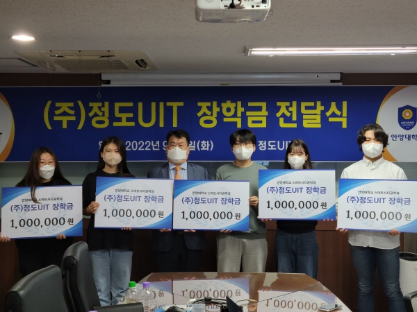 ¼¿ï½Ã °³²±¸ Å×Çì¶õ·Î ¢ßÁ¤µµUIT ´ëȸÀǽǿ¡¼ 9¿ù 6ÀÏ ¿¸° ÀåÇÐ±Ý Àü´Þ½Ä¿¡¼´Â ¢ßÁ¤µµUIT ÀÓÁ¾ÈÆ ºÎ»çÀå°ú ¾È¾ç´ë ½º¸¶Æ®½ÃƼ°øÇаú ¾ÈÁ¾¿í ÇаúÀåÀ» ºñ·ÔÇÑ Çаú ±³¼öÁøÀÌ Âü¼®ÇÑ °¡¿îµ¥ ½º¸¶Æ®½ÃƼ°øÇаú ÀçÇлý 5¸í¿¡°Ô ÀåÇÐ±Ý 500¸¸ ¿øÀÌ ¼ö¿©µÇ¾ú´Ù.