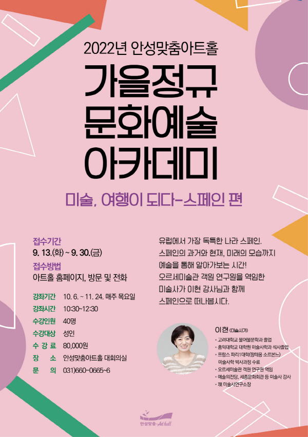 ¾È¼º¸ÂÃã¾ÆÆ®È¦ ¹®È¿¹¼ú¾ÆÄ«µ¥¹Ì ¡¸¹Ì¼ú, ¿©ÇàÀÌ µÇ´Ù - ½ºÆäÀÎ Æí ¡¹¼ö°»ý ¸ðÁý - ¸ðÁý ±â°£: 9.13.(È)~9.30.(±Ý) / ¼ºÀÎ 40¸í |