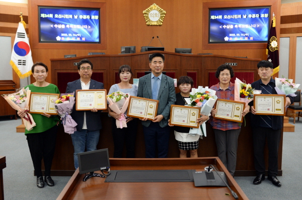 ¿À»ê½ÃÀÇȸ, Á¦34ȸ ½Ã¹ÎÀÇ ³¯ ±â³ä À¯°øÀÚ ½Ã»ó -Áö¿ª»çȸ ¹ßÀü À¯°øÀÚ 6¸í¿¡°Ô ǥâÀå Àü´Þ |
