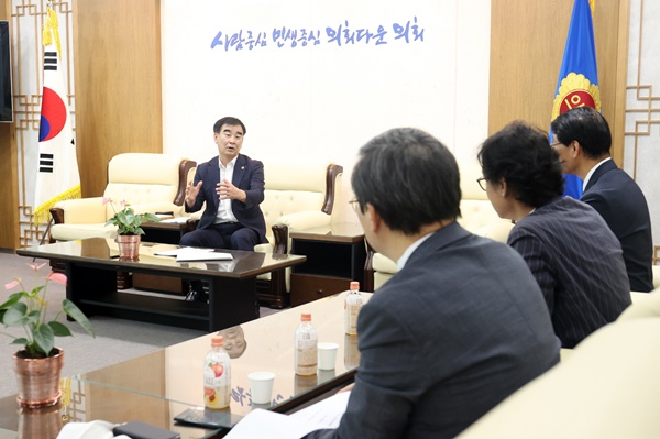 ¿°Á¾Çö °æ±âµµÀÇȸ ÀÇÀå(´õ¹ÎÁÖ, ºÎõ1)ÀÌ 19ÀÏ Çѱ¹¿¹¼ú¹®È´ÜüÃÑ¿¬ÇÕȸ °æ±âµµ¿¬ÇÕȸ(ÀÌÇÏ °æ±â¿¹ÃÑ) ±è¿ë¼ö ȸÀåÀ» ¸¸³ª °æ±âµµ ¹®È¿¹¼ú°è Áö¿ø¹æ¾ÈÀ» ³íÀÇÇß´Ù.