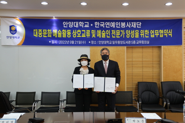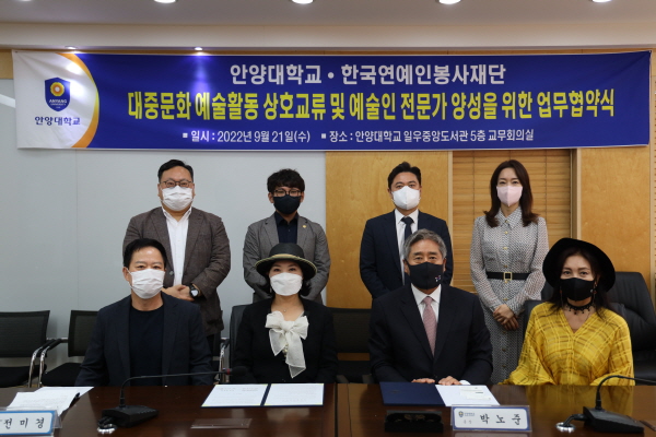 ¾÷¹«Çù¾à½ÄÀº ¾È¾ç´ë ¹Ú³ëÁØ ÃÑÀå°ú Çѱ¹¿¬¿¹ÀκÀ»çÀç´Ü Àü¹Ì°æ ȸÀåÀÌ Âü¼®ÇÑ °¡¿îµ¥ ¾È¾ç´ëÇб³ ÀÏ¿ìÁß¾Óµµ¼°ü 5Ãþ ±³¹«È¸Àǽǿ¡¼ ¿·ÈÀ¸¸ç, ´ëÁß¹®È ¿¹¼úȰµ¿ ¹× ¿¹¼úÀΡ¤Àü¹®°¡¸¦ ¾ç¼ºÇϱâ À§ÇØ µÎ ±â°üÀÌ »óÈ£ Çù·ÂÇÏ´Â ¹æ¾ÈÀÌ Àû±Ø ³íÀǵǾú´Ù.