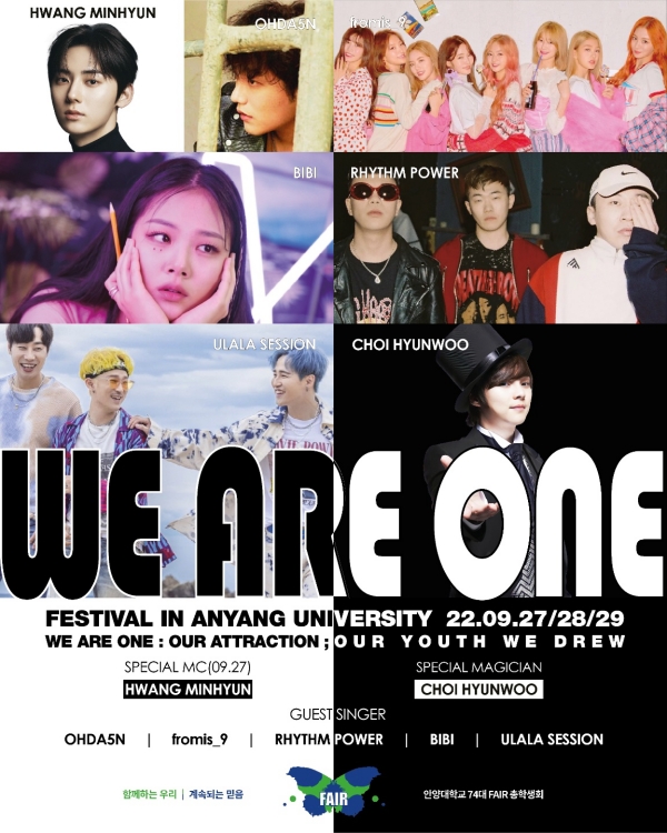 ¾È¾ç´ëÇб³ ÃÑÇлýȸ(ȸÀå ÁöÇÑ»ó)´Â ¡®We Are One¡¯À̶ó´Â ŸÀÌÆ²°ú ¡®¿ì¸®µéÀÇ Attraction; ¿ì¸®°¡ ±×¸° ¿ì¸®ÀÇ ÀþÀ½¡¯À̶ó´Â ºÎÁ¦·Î 27ÀϺÎÅÍ 29ÀϱîÁö »çÈê°£ ´ëÇÐ ÃàÁ¦¸¦ ÁøÇàÇÑ´Ù°í ¹àÇû´Ù.