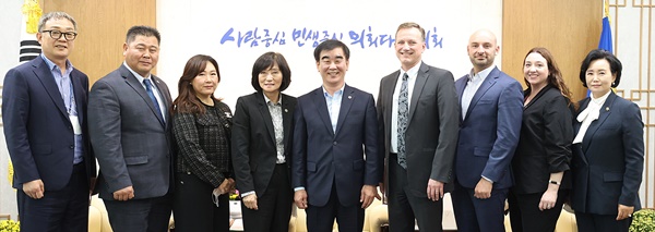 ¿° ÀÇÀåÀº À̳¯ ÀÇÀå Á¢°ß½Ç¿¡¼­ Á¤À±°æ ÀÇ¿ø(´õ¹ÎÁÖ, ±ºÆ÷1)°ú ÇÔ²² Å×·¹»ç Á¤ ¹Ì½Ã°£ ³²ºÎ ÇÑÀÎȸÀå, ¹Ú¿ë¹® ¼¼ÀÎÆ®·çÀ̽º ÇÑÀÎȸÀå, ¹éÇö¹Ì Ŭ¶ô½ººô ÇÑÀÎȸÀå, ÀÓº´¿ì ¼º°á´ëÇб³ ±³¼ö¿Í ¹Ì½Ã°£°æÁ¦°³¹ß°ø»ç(MEDC: Michigan Economic Development Corporation) ¿¡¸¯ ½´·¹Ç÷¯ ºÎȸÀå, ¾Ù·± ¿þ¹ö µðÆ®·ÎÀÌÆ® ÁöȸÀå, ·¹ÀÌÿ µµ³¯µå½¼ ±¹Á¦ÅõÀÚÀ¯Ä¡°úÀåÀ» Á¢°ßÇß´Ù.