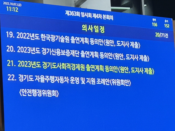 ÇÑÆí, ¡®363ȸ ÀÓ½Ãȸ Á¦4Â÷ º»È¸ÀÇ¡¯¿¡ ºÎÀÇµÈ 70¿©°ÇÀÇ ¾È°Ç Áß 21¹øÂ°(2023³âµµ °æ±âµµ»çȸÀû°æÁ¦¿ø Ã⿬°èȹ µ¿ÀǾÈ) ´Ü ÇϳªÀÇ ¾È°Ç¸¸À» ºÎ°á½Ã۱â·Î ´ç·ÐÀ¸·Î Á¤ÇÑ °ÍÀÌ ¾ÖÃÊ¿¡ º»È¸ÀÇ È帧À̳ª »óȲÀ» °í·ÁÇÏÁö ¸øÇÑ ´ëÇ¥´ÜÀÇ ¡®Àü·« ½ÇÆÐ¡¯¶ó´Â ÀÇ¿øµéÀÇ Àǰ߰ú ÀÇÃÑ¿¡¼ ´ëÇ¥´ÜÀÌ Á¦½ÃÇÑ ¹æ¹ý°ú ´Þ¸® Àç¼®À» ÅëÇÑ ¹Ý´ë¸¦ Àüü ÀǰßÀ¸·Î ÇßÀ» ½Ã ºÎ°áµÉ ¼ö ÀÖ¾úÀ» °ÍÀ̶ó´Â °Ô ÀÇ¿øµéÀÇ ÀǰßÀÌ´Ù.