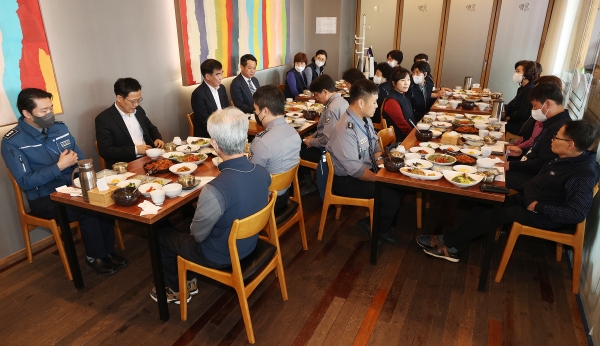 À̳¯ °£´ãȸ´Â µµÀÇȸ Çö¾÷±Ù¹«ÀÚµéÀÇ ³ë°í¸¦ °Ý·ÁÇϰíÀÚ ¸¶·ÃµÆÀ¸¸ç, µµÀÇȸ û»ç ¾ÈÆÆ¿¡¼ ÀÏÇϰí Àִ û¿ø°æÂû, ¹æÈ£¿ø, û¼Ò¿ø µî 23¸íÀÌ Âü¼®Çß´Ù.