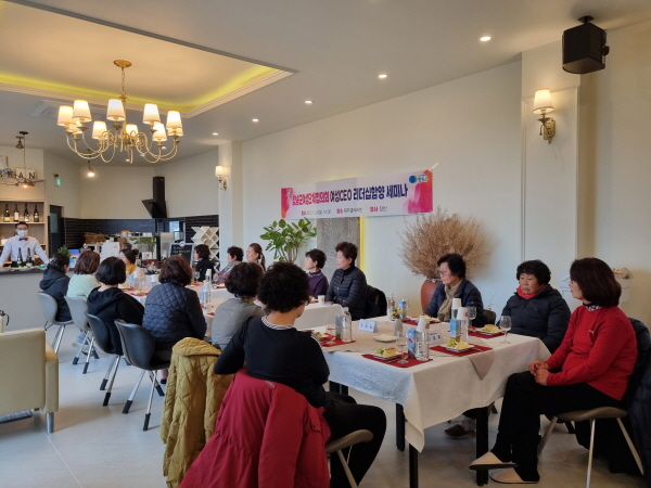 Á¦ÁÖ½Ã, °¶·¯¸®ºó¿¡¼ Áö³ 4ÀÏ Ã»¼Û±º¿©¼º´ÜüÇùÀÇȸ ¿©¼ºCEO ¸®´õ½Ê ÇÔ¾ç ¼¼¹Ì³ª °³ÃÖ ÀÌ¿µÈñ û¼Û±º¿©¼º´ÜüÇùÀÇȸÀå´ÔÀ» ºñ·ÔÇÑ ¿©¼ºCEO, û¼Û±ºÃ» °ø¹«¿ø ¹× 15¸íÀÌ Á¦ÁÖ °¶·¯¸®ºó¿¡¼ Àåºó ´ëÇ¥¸¦ ÃʺùÇÏ¿© '¿©¼ºCEO ¸®´õ½Ê ÇÔ¾ç°ú ¿ÍÀÎ Å×ÀÌºí ¸Å³Ê'¿¡ ´ëÇØ °ÀǸ¦ ÁøÇàÇß´Ù. |