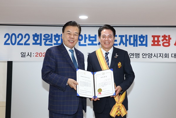 ÃÖ´ëÈ£ ¾È¾ç½ÃÀåÀÌ ÀÚÀ¯¹ÎÁÖÁÖÀÇ ¼öÈ£¿Í ¼¼°èÆòȸ¦ À§ÇØ Çå½ÅÇÑ °ø·Î·Î ¼¼°èÀÚÀ¯¹ÎÁÖ¿¬¸Í(World League Freedom Democracy)¿¡¼ ¼ö¿©ÇÏ´Â Æ÷»óÀÎ ¡®ÀÚÀ¯À塯À» ¼ö»óÇß´Ù.