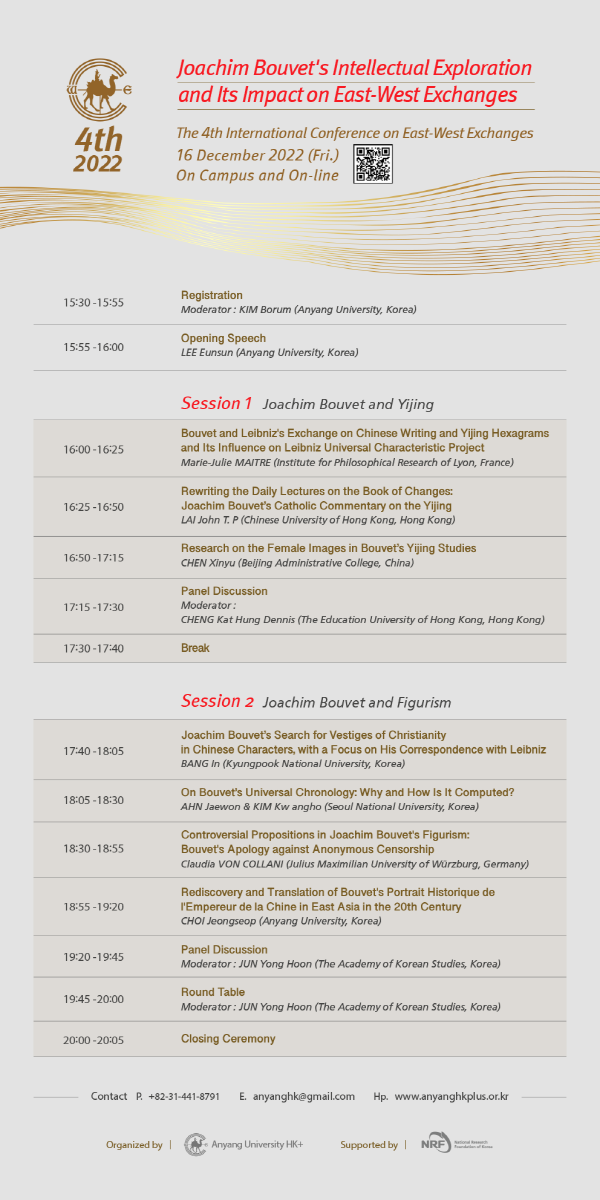 À̹ø Á¦4ȸ ±¹Á¦Çмú´ëȸ¿¡¼´Â ¡®Á¶¾ÆÅ´ ºÎº£ÀÇ ÁöÀû Ž»ö°ú µ¿¼±³·ù¿¡ ÀÖ¾î¼ÀÇ ¿µÇâ(Joachim Bouvet¡¯s Intellectual Exploration and Its Impact on East-West Exchanges)¡¯¿¡ °üÇÑ ÇÁ¶û½º¿Í Áß±¹, µ¶ÀÏ µî 5°³ ³ª¶ó ÇÐÀÚµéÀÇ ÁÖÁ¦ ¹ßÇ¥°¡ ÀÖÀ» ¿¹Á¤ÀÌ´Ù.