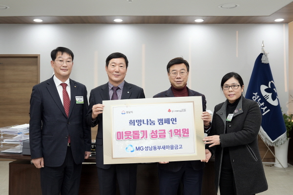 MG¼º³²µ¿ºÎ»õ¸¶À»±Ý°í´Â ¼º³²½Ã ÇÑÆÄÃë¾à°èÃþ Áö¿øÀ» À§ÇØ 12¿ù 26ÀÏ ¼º³²½Ã¿¡ 1¾ï¿øÀÇ ¼º±ÝÀ» ¸Ã°å´Ù.