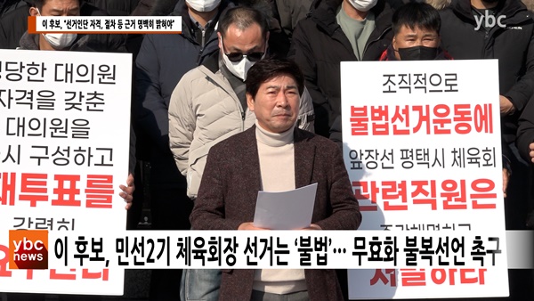 [¾È³çÇϽʴϱî. YBCnewsÀÔ´Ï´Ù. ÆòÅýà üÀ°ÀÇ ¹Ì·¡¸¦ À̲ø¾î ³ª°¥ ¹Î¼± 2±â üÀ°È¸Àå¼±°Å°¡ Áö³­ 22ÀÏ Ä¡·¯Áø °¡¿îµ¥ ÀϺΠüÀ°°ü°èÀÚµéÀÌ ºÒ¹ý¼±°Å ÀÇȤÀ» Á¦±âÇÏ¸ç ¼±°Å ¹«È¿¸¦ ÁÖÀåÇÏ°í ³ª¼¹½À´Ï´Ù.]