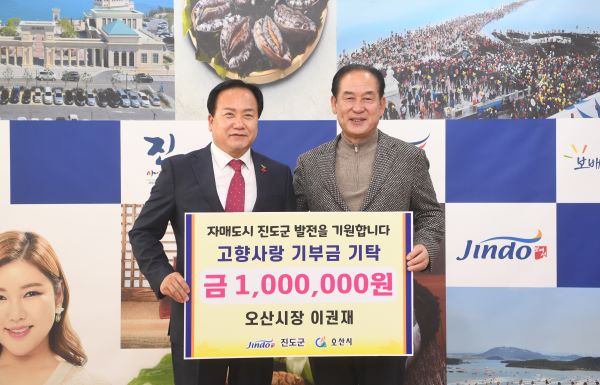 À̱ÇÀç ¿À»ê½ÃÀåÀÌ 12ÀÏ Àڸŵµ½Ã Àü¶ó³²µµ Áøµµ±ºÀ» ã¾Æ°¡ ±âºÎ±ÝÀ» ±âŹÇÏ¸ç °íÇâ»ç¶û ±âºÎÁ¦¿¡ µ¿ÂüÇß´Ù. À̱ÇÀç ½ÃÀåÀº ÀÚ½ÅÀÇ ¸ð±³°¡ ÀÖ´Â ¸ñÆ÷½Ã¿¡µµ ±âºÎ±ÝÀ» ±âŹÇÏ´Â µî ¿ÃÇØºÎÅÍ ´ë´ëÀûÀ¸·Î ½ÃÇàµÇ°í ÀÖ´Â °íÇâ»ç¶û ±âºÎÁ¦ Ȱ¼ºÈ¿Í È«º¸¸¦ À§ÇØ ¹ß ¹þ°í ³ª¼¹´Ù. ¡®°íÇâ»ç¶û ±âºÎÁ¦¡¯´Â ÇØ´ç Áö¹æÀÚÄ¡´ÜüÀÇ ÁÖ¹ÎÀÌ ¾Æ´Ñ »ç¶÷ÀÌ Å¸ ÁöÀÚü¿¡ ÀÚ¹ßÀûÀ¸·Î ±âºÎÇÏ´Â Á¦µµ¸¦ ¸»ÇÑ´Ù.