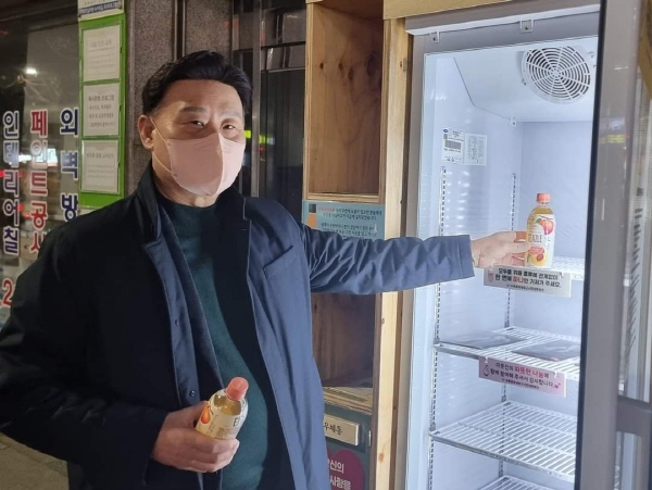 ÃÖ À§¿øÀåÀº Á÷Á¢ ½ÇÇàÀ» ÅëÇØ ¡°¿ì¸®µ¿³×(¸Åź4µ¿)¿¡ ¼ö¿ø24È£ °øÀ¯³ÃÀå°í°¡ ¼³Ä¡µÇ¾î ÀÖ´Ù¡±¸é¼ ¡°ÆíÀÇÁ¡¿¡¼ À½·á¸¦ »ç°í ´ýÀ¸·Î ¹ÞÀº °ÍÀº °øÀ¯³ÃÀå°í¿¡ ³Ö¾îµÎ¾ú´Ù¡±´Â ¸»°ú ÇÔ²² °øÀ¯³ÃÀå°í¿¡ ³Ö¾î µÐ »çÁøÀ» °ø°³Çß´Ù.