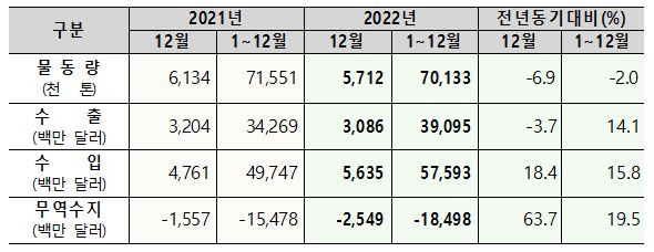 ¡à 2022³âµµ 12¿ù ¼öÃâÀÔ½ÇÀû Á¾ÇÕ