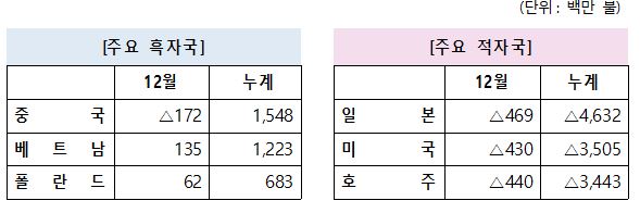 - (¹«¿ª¼öÁö) ¿¡³ÊÁö ÀÎÇ÷¹À̼ǿ¡ µû¸¥ ¼öÀÔ ±ÞÁõ µî ¿µÇâÀ¸·Î 12¿ù ¹«¿ª¼öÁö´Â 25.5¾ï ´Þ·¯ ÀûÀÚ¸¦ ±â·ÏÇÏ¿´´Ù.