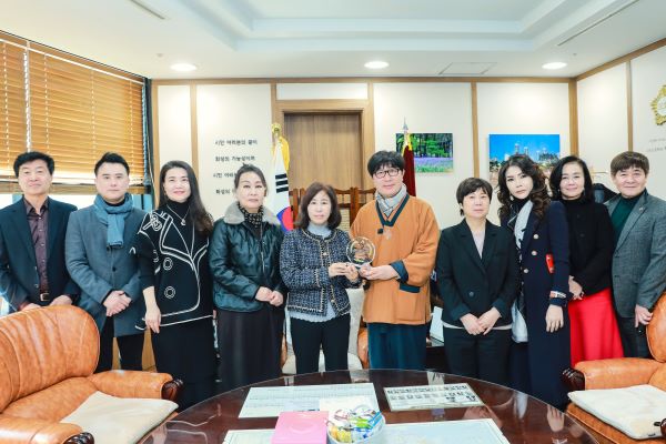 À̳¯ °£´ãȸ¿¡¼­´Â È­¼º½Ã ¹®È­¿¹¼ú ¹ßÀüÀ» À§ÇÑ ³ë·ÂÇÑ ±è°æÈñ ÀÇÀå¿¡°Ô È­¼º½Ã Àü ¿¹¼úÀεéÀÇ °¨»çÀÇ ¸¶À½À» ´ã¾Æ °¨»çÆÐ¸¦ Àü´ÞÇÏ¿´´Ù.