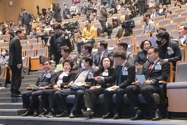°Ô´Ù°¡ ³»ºó ¼Ò°³ ½Ã°£¿¡´Â »çȸÀÚ°¡ ¡°Á÷¹«ÁýÇàÁ¤Áö ÁßÀÌÁö¸¸ ÀÚ¸®¸¦ ºû³»±â À§ÇØ ±¹¹ÎÀÇÈû °û¹Ì¼÷ ´ëÇ¥ÀÇ¿ø²²¼ Âü¼®Çϼ̽À´Ï´Ù¡±¶ó´Â ¼Ò°³¿Í ´õºÒ¾î À̾îÁø ¼ø¼¸¶´Ù ÀÇÀå´Ü°ú ÀÚ¸®¸¦ ³ª¶õÈ÷ Çϸç ÁøÇàµÈ Çà»çÀÇ ¸ðµç ½Ä¼øÀ» ¼ÒÈÇß´Ù.