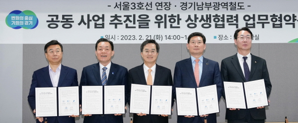 21ÀÏ, ¼ö¿ø½Ã´Â ¿ëÀΡ¤¼º³²¡¤È¼º½Ã, °æ±âµµ´Â 21ÀÏ °æ±âµµÃ» ½Å°ü »óȲ½Ç¿¡¼ ¡®¼¿ï 3È£¼± ¿¬À塤°æ±â³²ºÎ±¤¿ªÃ¶µµ °øµ¿»ç¾÷ ÃßÁøÀ» À§ÇÑ »ó»ýÇù·Â Çù¾à¡¯À» ü°áÇϰí, Çù·ÂÀ» ¾à¼ÓÇß´Ù°í ¹àÇû´Ù.