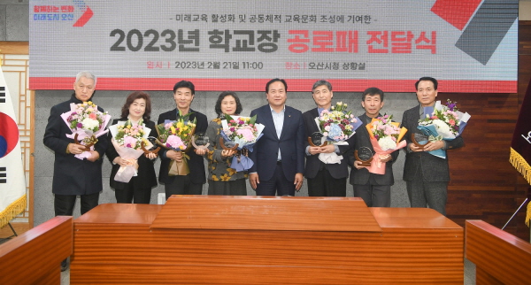 21ÀÏ ¿À»ê½Ã°¡ ½Ãû »óȲ½Ç¿¡¼ ¹Ì·¡±³À° Ȱ¼ºÈ ¹× °øµ¿Ã¼Àû ±³À°¹®È Á¶¼º¿¡ ±â¿©ÇÏ°í ±³Á÷ »ýȰÀ» ¸¶¹«¸®ÇÏ´Â °ü³» Çб³ÀåÀ» ´ë»óÀ¸·Î °ø·ÎÆÐ¸¦ Àü´ÞÇß´Ù.
