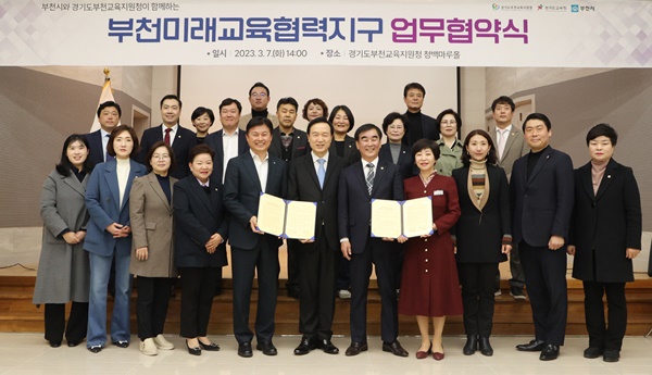 ÇÑÆí, À̳¯ °æ±âµµºÎõ±³À°Áö¿øÃ»°ú ºÎõ½Ã´Â ¡®¹Ì·¡±³À°Çù·ÂÁö±¸¡¯ »ç¾÷¿¡ °üÇÑ ÇࡤÀçÁ¤Àû Áö¿ø ¹× ÀÎÀû¡¤¹°Àû ÀÚ¿øÀ» °øÀ¯ÇÏ´Â ³»¿ëÀ» °ñÀÚ·Î ÇÑ ¾÷¹«Çù¾àÀ» ü°áÇß´Ù.