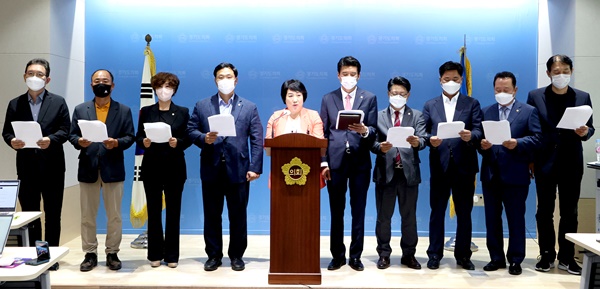 °æ±âµµÀÇȸ ±³¼·´Üü ±¹¹ÎÀÇÈû ´ëÇ¥´ÜÀÌ 9ÀÏ ±èµ¿¿¬ °æ±âµµÁö»çÀÇ ¡®¹Î»ý º¹¿ø¡¯, ¡®Á¤Ä¡ º¹¿ø¡¯ ±âÀÚȸ°ß°ú °ü·ÃÇØ ¡°´ë¼± Èĺ¸ ȯ»ó ¹þ¾î³ª µµÁö»çÀÇ ±æ °É¾î¾ßÇÑ´Ù¡±¸ç ºñÆÇÇÏ°í ³ª¼¹´Ù.