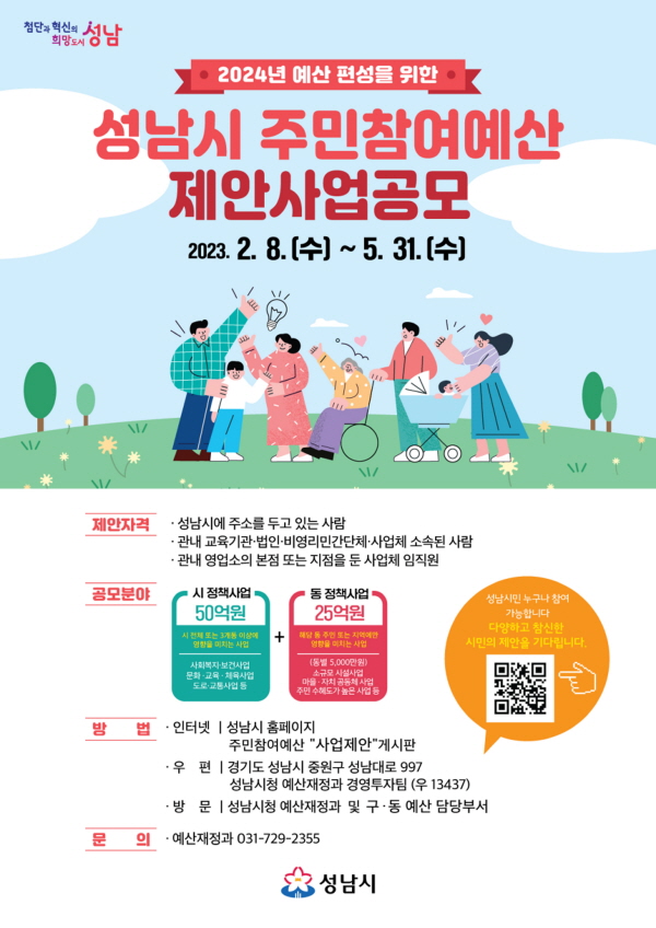 °ø¸ð Âü¿© ´ë»óÀº ¼º³²½Ã¹ÎÀÌ¸é ´©±¸³ª °¡´ÉÇϰí, ¼º³²½Ã ÁÖ¹ÎÂü¿©¿¹»ê ȨÆäÀÌÁö¸¦ Á¢¼ÓÇØ ³»³âµµ ¿¹»ê¿¡ ¹Ý¿µÇØ¾ß ÇÒ »ç¾÷ ³»¿ëÀ» Àû¾î º¸³»¸é µÈ´Ù.