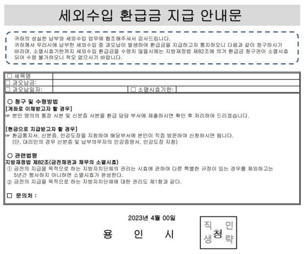 ¿ëÀÎÆ¯·Ê½Ã, '¼¼¿Ü¼öÀÔ È¯±Þ' ³»´Þ28ÀϱîÁö Áö±Þ - ³³¼¼ÀÚ¿¡°Ô ¾È³»¹® ¹ß¼Û¡¦355°Ç, °ú¡¤¿À³³±Ý 1¾ï¿©¿ø ȯ±ÞºÐ ÁýÁß Á¤¸®Å°·Î |