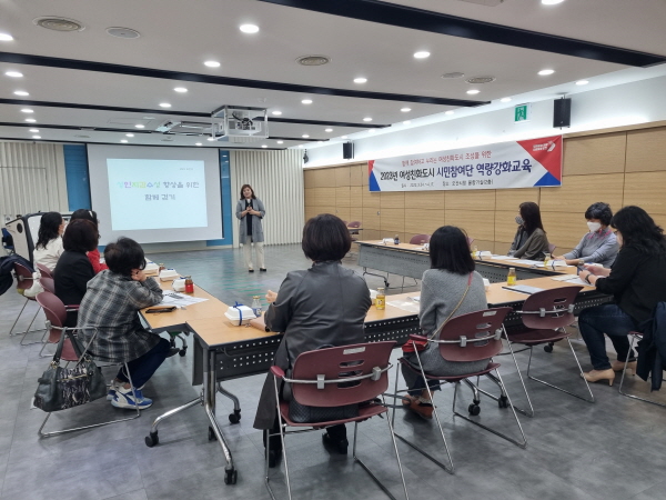 ¿À»ê½Ã´Â Áö³ 24ÀÏ ½Ãû ¹°Çâ±â½Ç¿¡¼ ¿©¼ºÄ£Èµµ½Ã ½Ã¹ÎÂü¿©´Ü ´ë»óÀ¸·Î¡®¿©¼ºÄ£Èµµ½Ã Á¶¼º ½Ã¹ÎÂü¿©´Ü ¿ª·®°È 1Â÷ ±³À°¡¯À» ½Ç½ÃÇß´Ù.