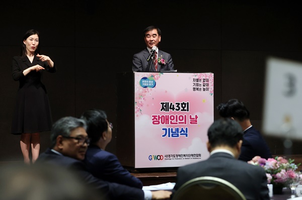 ¿°Á¾Çö °æ±âµµÀÇȸ ÀÇÀåÀÌ 20ÀÏ ¡®Á¦43ȸ °æ±âµµ Àå¾ÖÀÎÀÇ ³¯ ±â³ä½Ä¡¯¿¡ Âü¼®ÇØ Àå¾ÖÀÎ ¡®±âº»Àαǡ¯ ±¸ÇöÀÇ Á߿伺À» °­Á¶Çß´Ù.