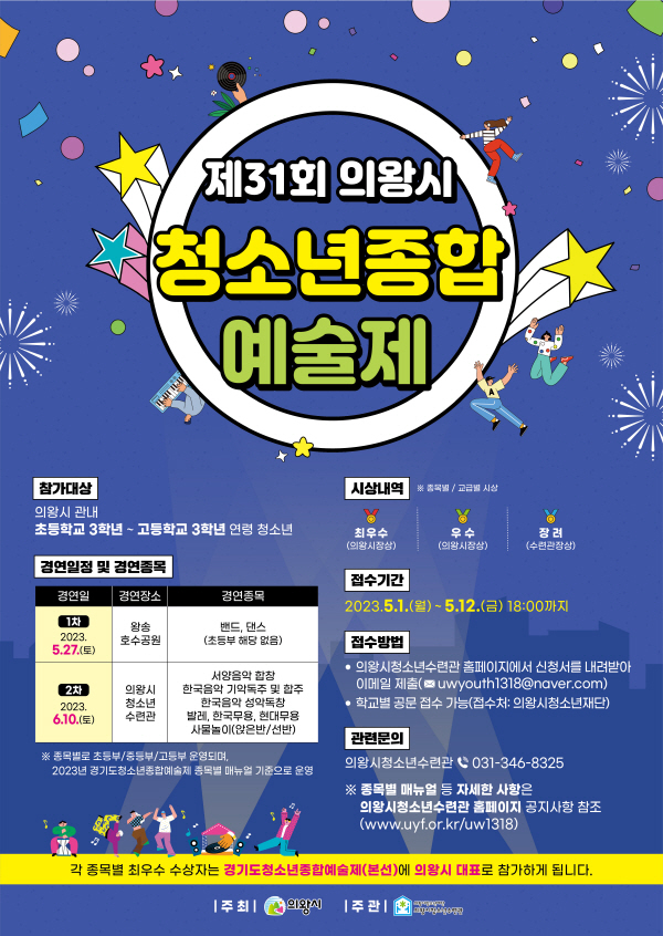 ÀǿսÃ, Á¦31ȸ û¼Ò³âÁ¾ÇÕ¿¹¼úÁ¦ Âü°¡ÀÚ ¸ðÁý -3°³ ºÎ¹® 15°³ Á¾¸ñ, 5¿ù 12ÀϱîÁö Á¢¼ö |