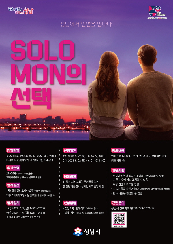 ¼º³²½Ã´Â ¿À´Â 7¿ù 2Àϰú 9ÀÏ ¹ÌÈ¥ ûÃá³²³àÀÇ ¸¸³² ÀÚ¸®ÀÎ ¡®¼Ö·Î¸óÀÇ ¼±ÅᯠÇà»ç¸¦ ¿¬´Ù°í 18ÀÏ ¹àÇû´Ù.