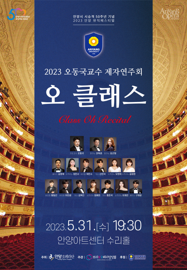 ¾È¾ç½Ã ½Â°Ý 50ÁÖ³âÀ» ±â³äÇÏ´Â ¡®2023 ¾È¾ç ¹ÂÁ÷Æä½ºÆ¼¹ú¡¯ÀÇ Ã¹ °ø¿¬À¸·Î ÆîÃÄÁö´Â ¾È¾ç´ë ¼º¾Ç Àü°ø ÇлýµéÀÇ ¿¬ÁÖȸ ¡®2023 ¿À Ŭ·¡½º¡¯´Â ¾È¾ç¾ÆÆ®¼¾ÅÍ ¼ö¸®È¦¿¡¼­ ¿À´Â 31ÀÏ ¿ÀÈÄ 7½Ã 30ºÐ¿¡ ¿­¸°´Ù.